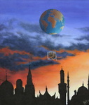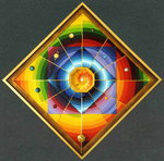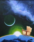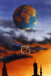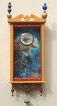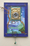 2005Klokkenhuis met daarin een schildering van de micro- en macrokosmos, waartussen de Aarde slingert (beweegt).Met uurwerkje en planeten.