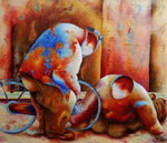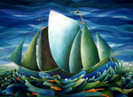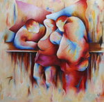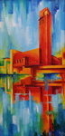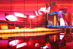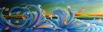 2007Het doek is op twee manieren op te hangen, waardoor het perpectief of een golf óf een bloem is. Met lijst.