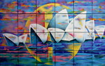 200524-luik bestaande uit 24 doekjes van elk 20-20cm. Door het klittenband aan de achterzijde van de doekjes is er naar believen een andere abstractie te vormen.
